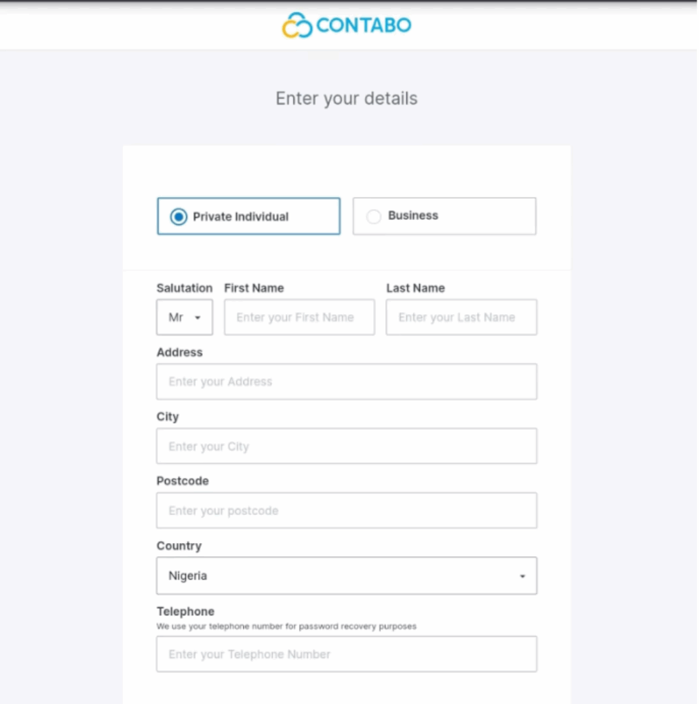 Getting started with Contabo is quick and hassle-free. The signup process only requires: