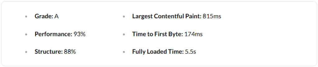 However, the absence of a CDN contributed to slightly longer wait times, and adding this could improve performance for global visitors.