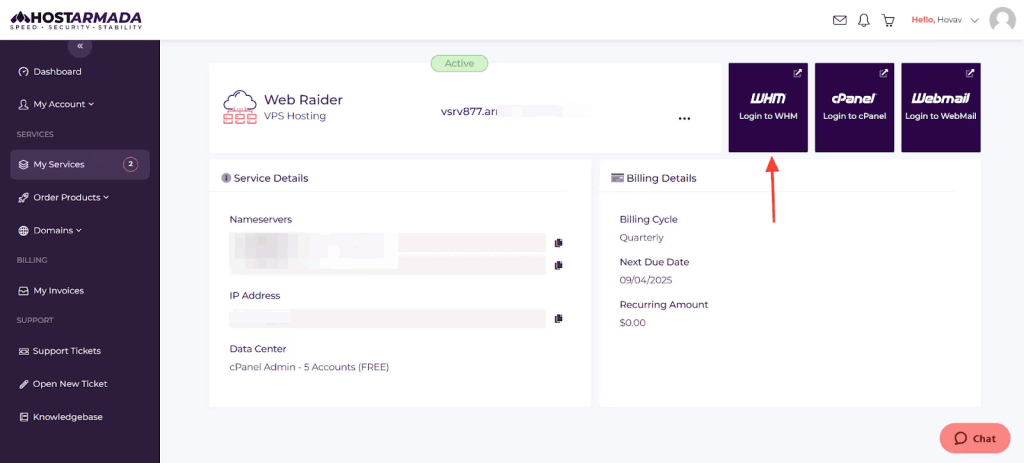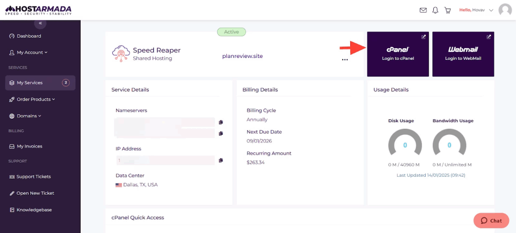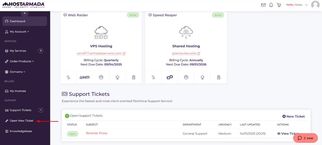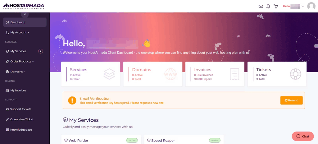 HostArmada’s dashboard is one of the most user-friendly I’ve encountered, balancing simplicity with flexibility. The inclusion of shortcuts for managing services, invoices, and support makes it an even more streamlined tool.