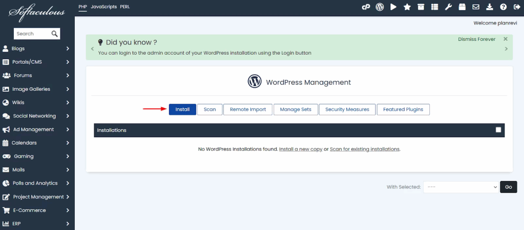 To see how easy this would be for a beginner, I decided to install the WordPress manager. Through Softaculous, I was able to do this in literally a couple of clicks from here – so I’d say that’s pretty straightforward.