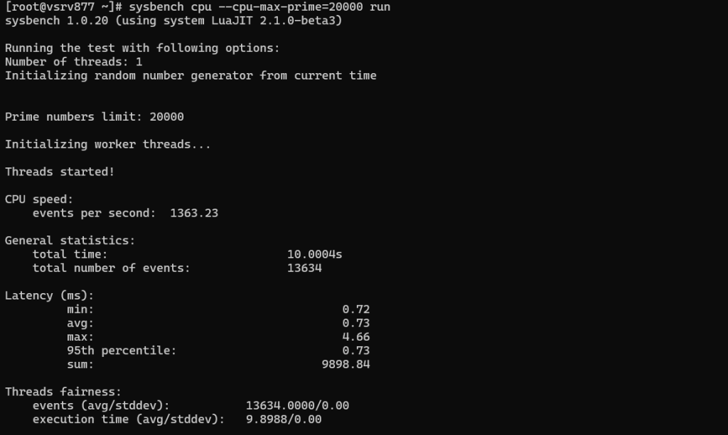 This test measures how well the CPU handles mathematical computations, evaluating the server’s processing power.