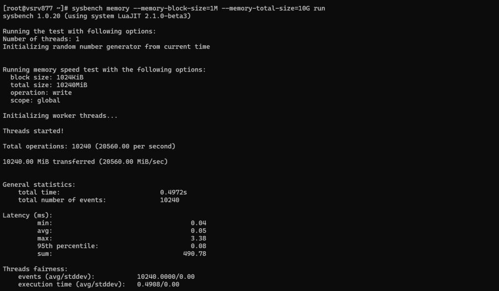 sysbench memory –memory-block-size=1M –memory-total-size=10G run
