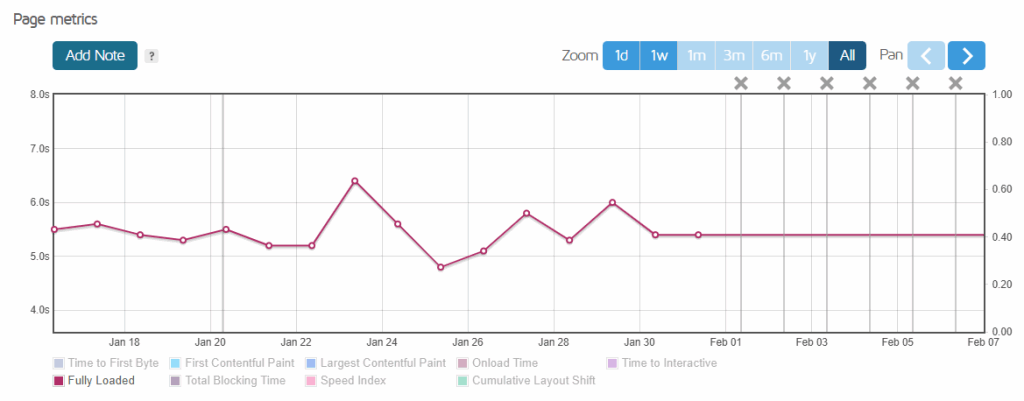 On the best-performing day, January 28, the website fully loaded in 5.34 seconds, proving that HostArmada’s shared hosting is capable of fast load times under optimal conditions.