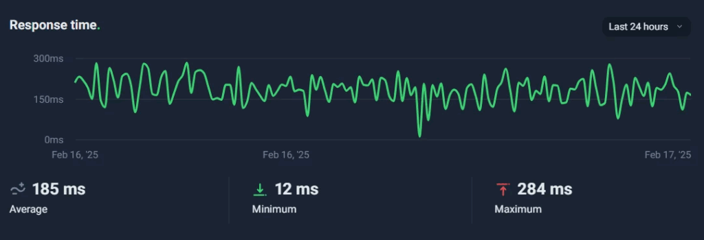 Apart from uptime, I also monitored server response time over the month, and my HostArmada shared hosting server offered consistently strong performance. Even the slowest recorded response time was well within any acceptable range, making HostArmada one of the leading providers.