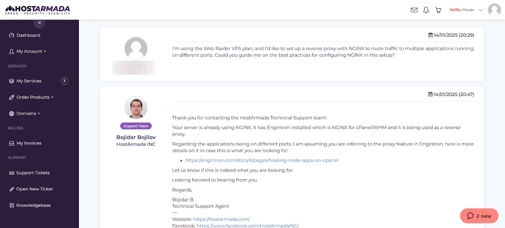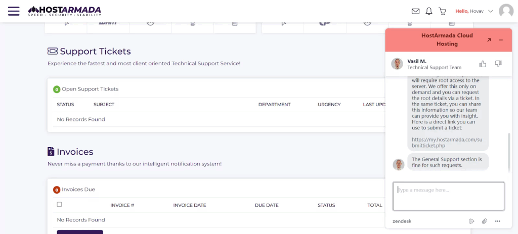 Accessing HostArmada’s live chat support is straightforward—simply click the button at the bottom-right corner of the user dashboard and complete a short form. When I submitted my query, I was connected to a human agent in under 30 seconds. The representative was polite, professional, and guided me to submit a support ticket by providing a direct link for further assistance.