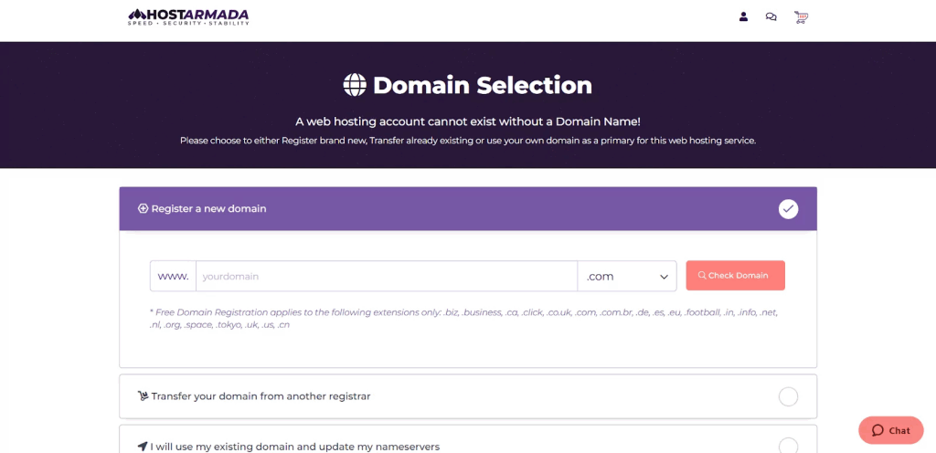 Registering for HostArmada was simple – select your plan, input domain information, and you’re ready to get started.